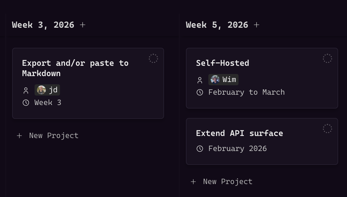 We track Thymer bugs, of course, in Thymer ourselves, assign them, plan them, and have notes about them. But it's not public.